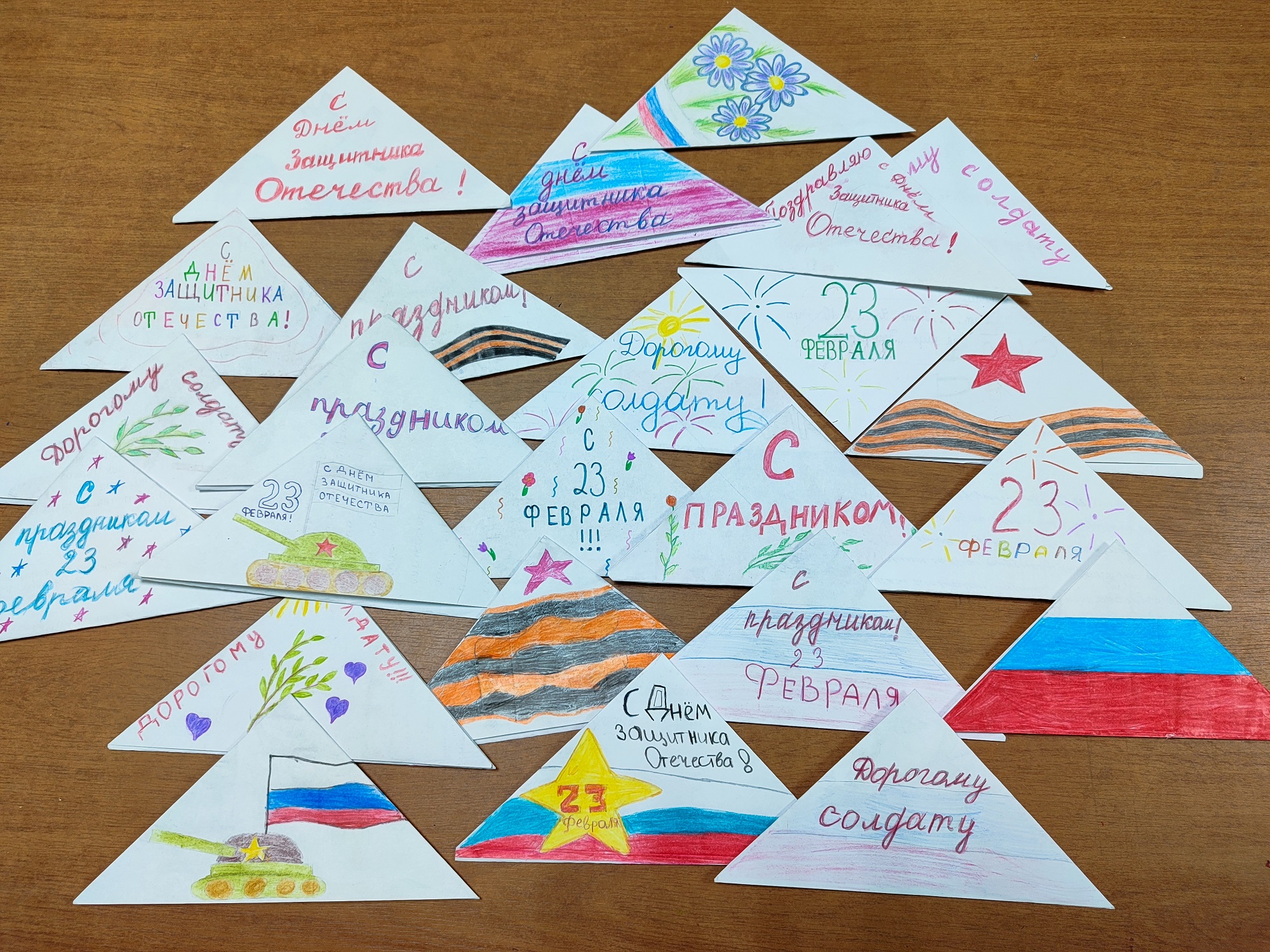 5 февраля в дворовом клубе «Перекресток» МБУ «Современник» прошла акция «Письмо солдату». Воспитанники поздравили воинов с наступающим праздником с днем защитника Отечества. Выразили слова благодарности всем тем, кто сейчас исполняет свой воинский долг, за чистое, мирное небо и возвращения домой живыми и здоровыми. Свои письма ребята украсили рисунками, георгиевскими ленточками и оформили их в виде писем-треугольников.