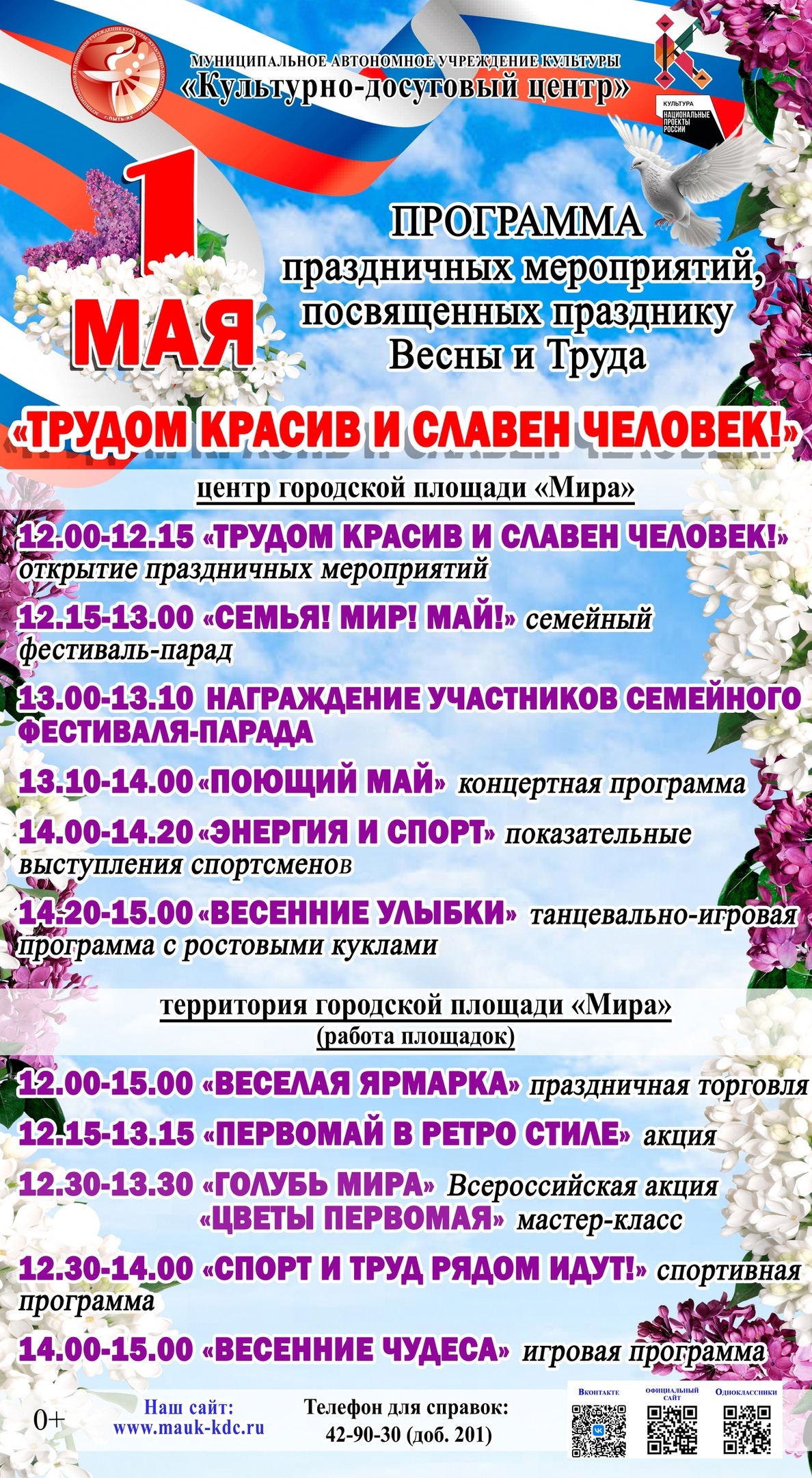 Приглашаем вас принять участие в праздничных мероприятиях, посвященных Первому Мая – Дню весны и труда!