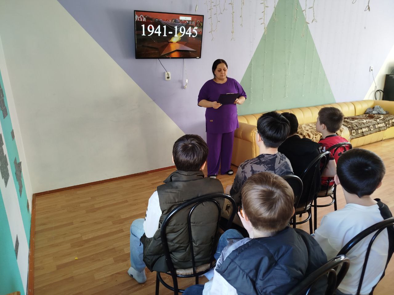 08 мая 2025 года в дворовом клубе «Ровесник» специалисты провели для воспитанников мероприятие, посвящённое Дню Победы, в рамках которого был показан видеосюжет «Зови же, память, снова 45-й».