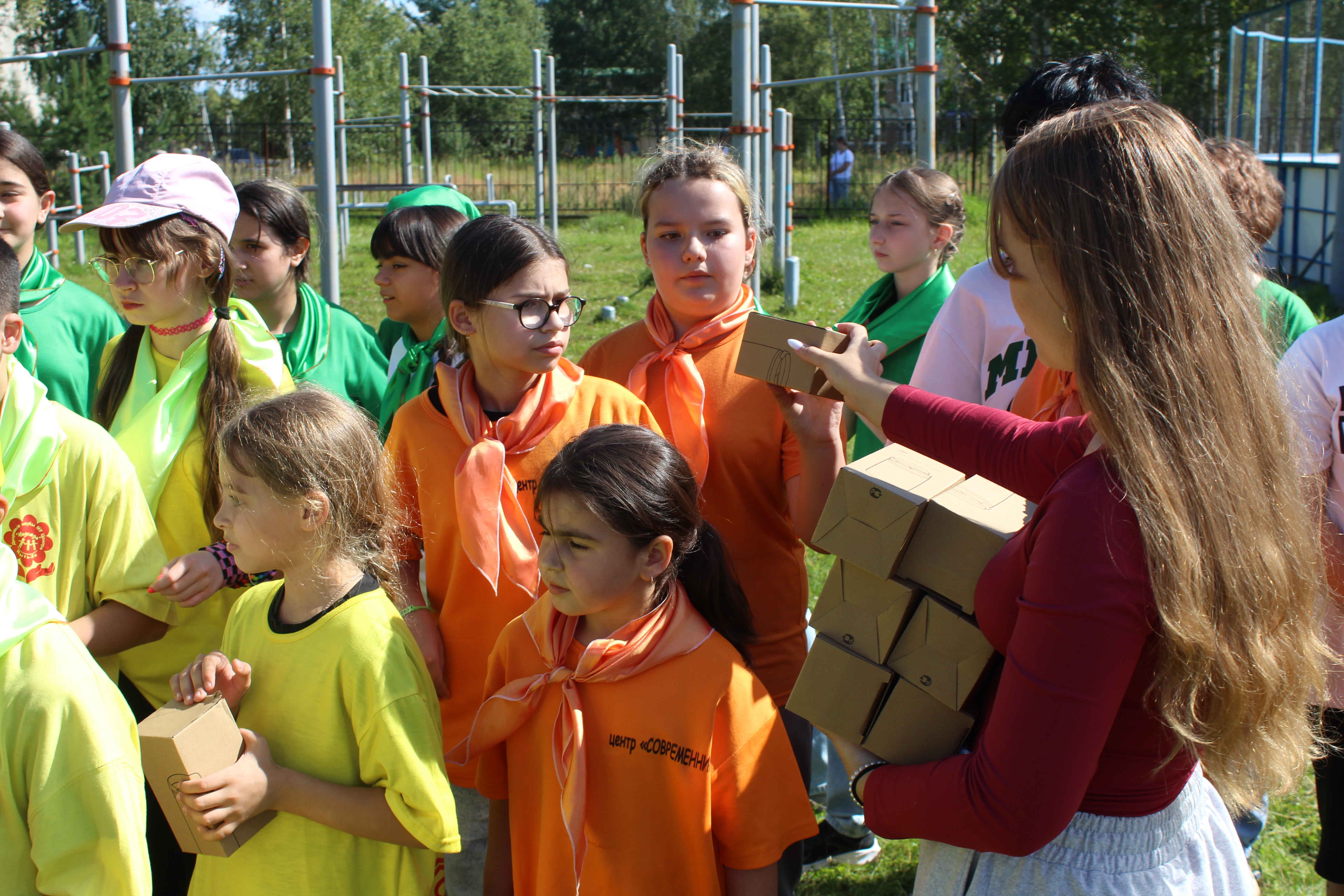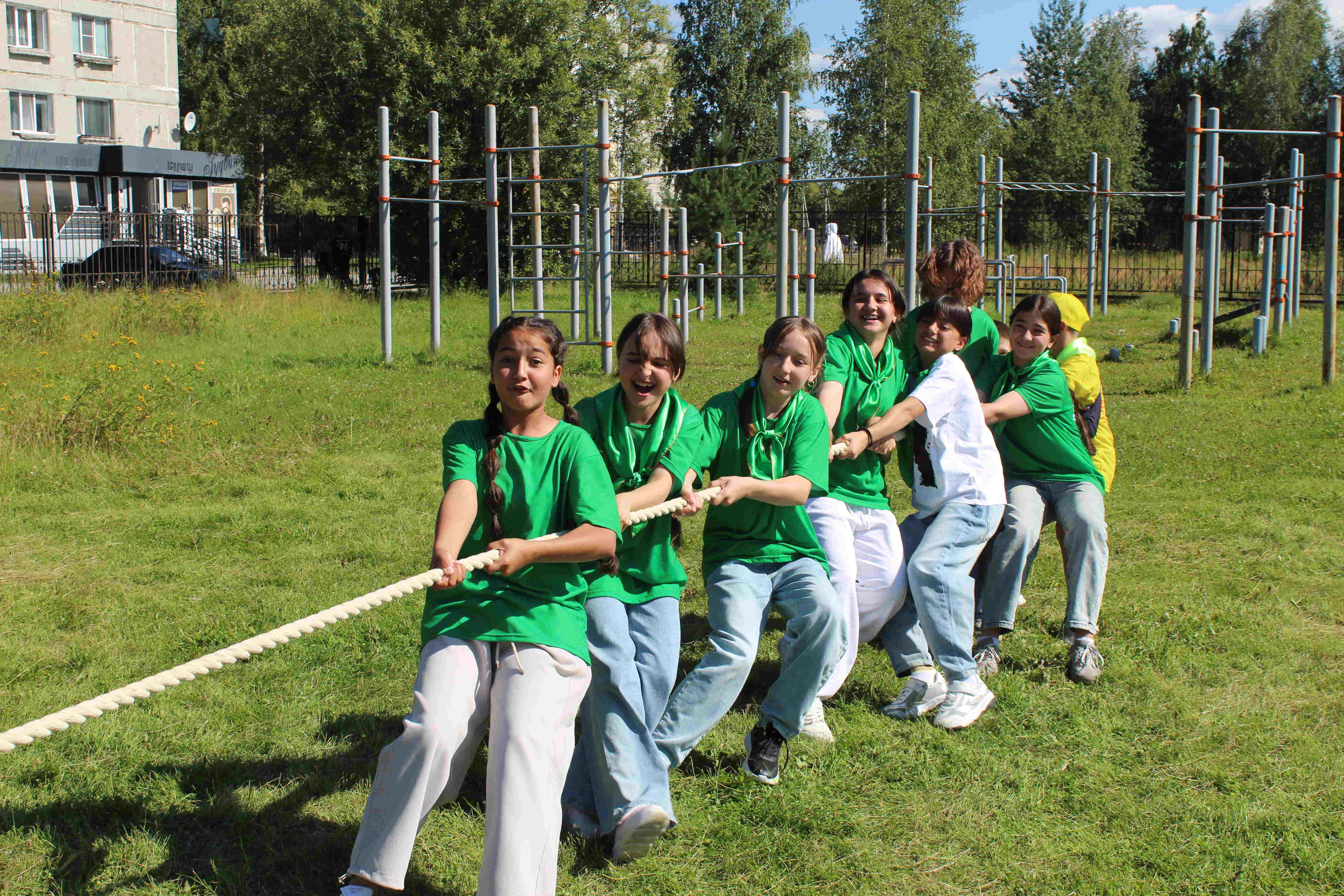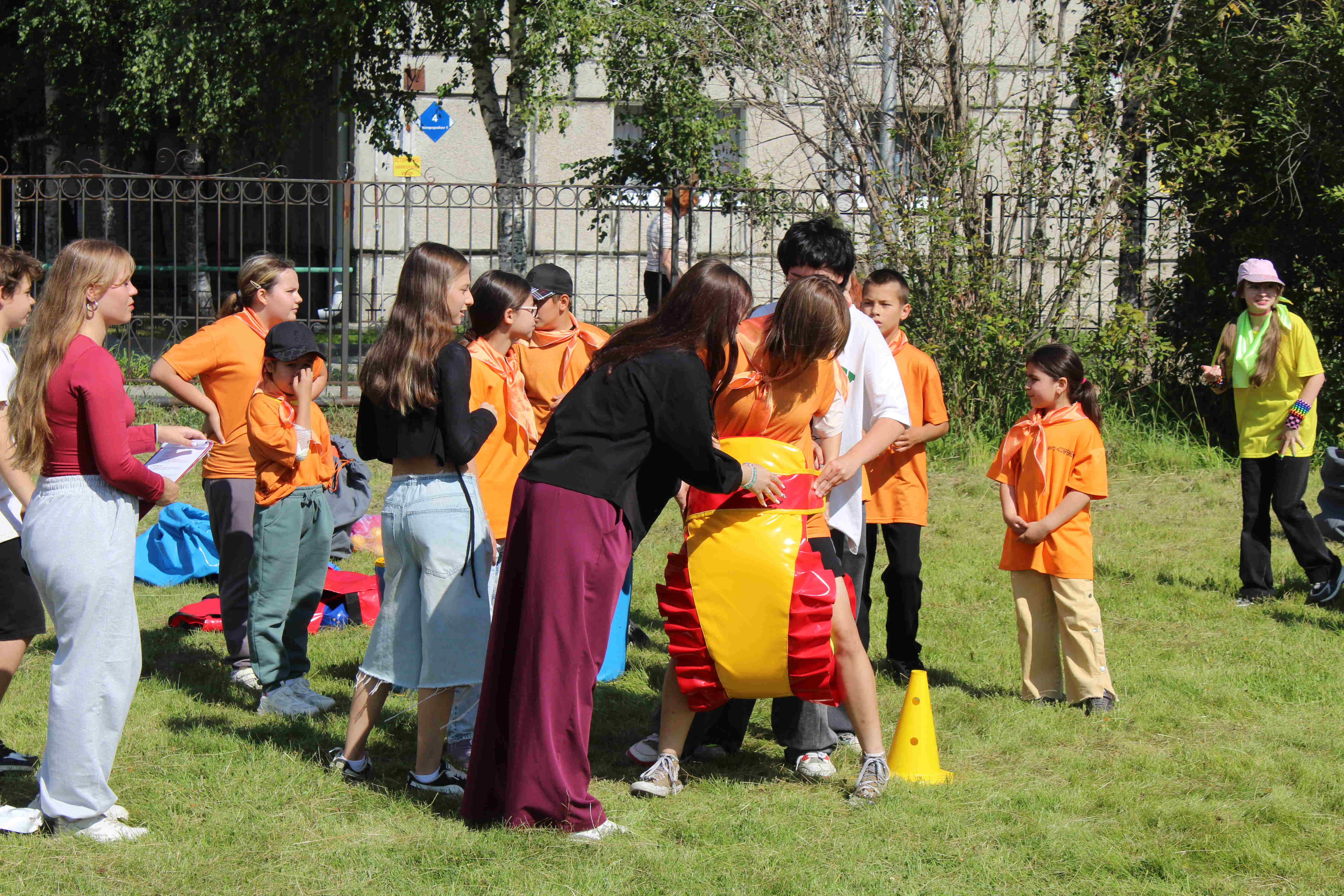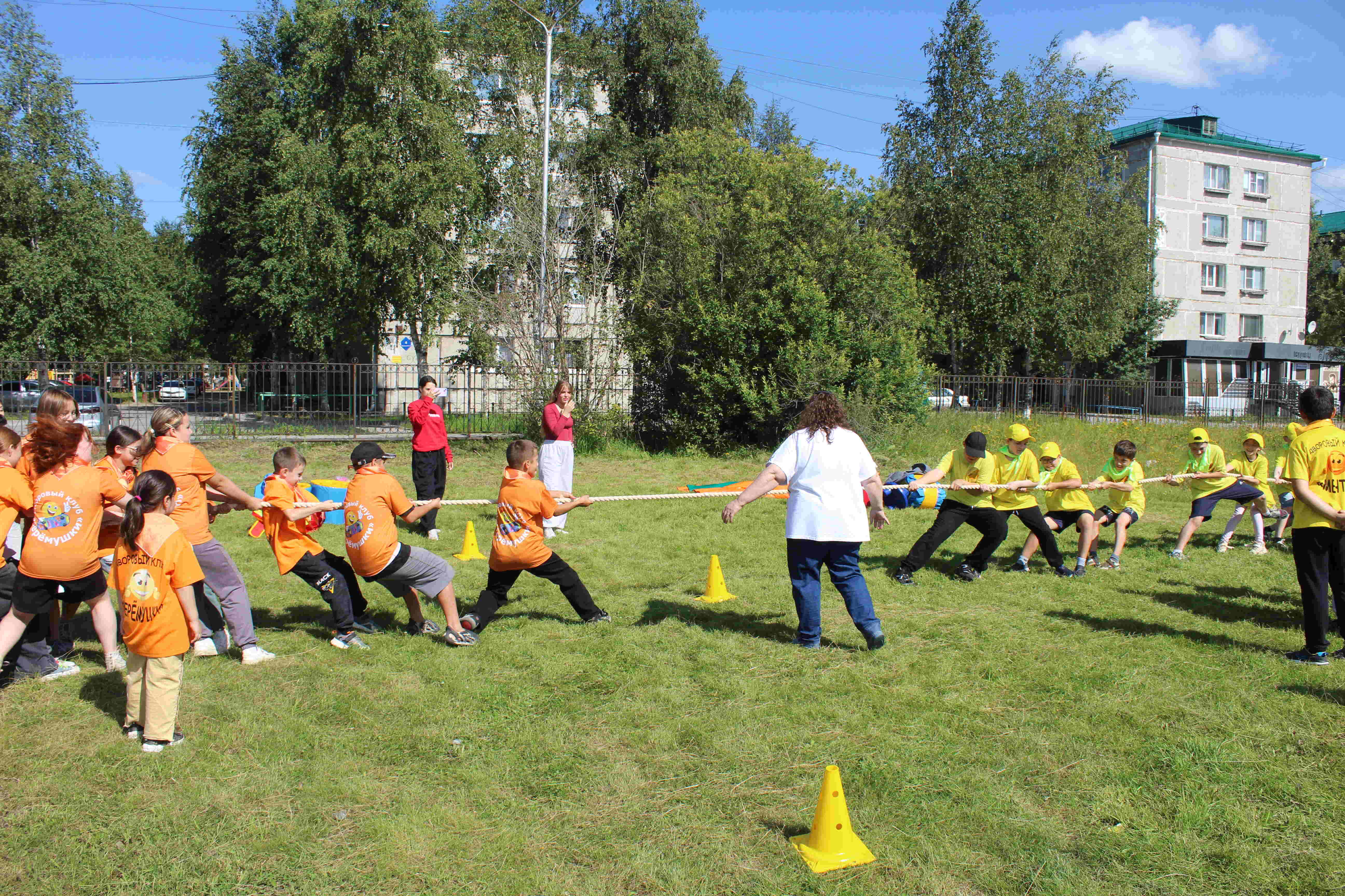 В веселых стартах участвовало 6 команд «Солнечный остров» и «Черёмушки», «Мечта» и «Планета», а так же к нам присоединились ребята пришкольной летней оздоровительной площадки. Мальчишки и девчонки бегали в «ведрах», гигантских «памперсах», на скорость собирали «бургер» и демонстрировали меткость, попадая шариками в «штаны-ловуны», а последним испытанием для команд стало перетягивание каната.